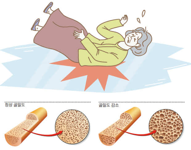 40세 차후부터 남녀 불문하고 골밀도가 감소하게 되는데, 특히 여성의 경우 매년 골밀도가 1.5 ~ 2% 감소한다고하더라고요. 골다공증에 관련되면 뼈에 미세한 구멍이 생기게 되고 이때문에 작은 충격에도 쉽게 골절이 생기게 돼요.