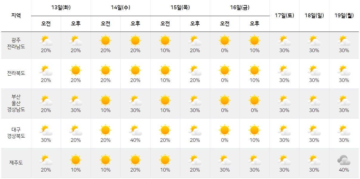 좀 더 소상한 전국 주간날씨예보를 정리해보겠습니다.
