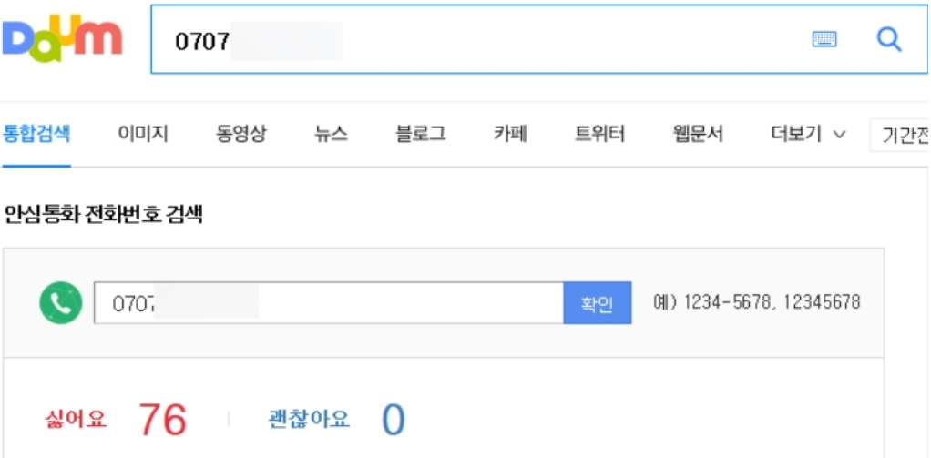 포털사이트에 전화온 번호를 검색하는 방법이고요. 다음검색창에 내가 받은 모르는 전화번호 검색을 해보시면 어찌 번호인지 찾아볼 수 있다고 합니다. 070으로 첫번째로 하는 번호를 조사해보면 안심통화 전화번호 검색이라고 나오게 되면서 어떠한번호인지 알려줘요.