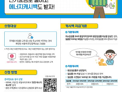 근일되서 전기 요금이 인상되면서 달마다 납부해야 하는 가액에 대해서 부담을 느끼신 분들도 많이 계시리라 생각됩니다. 전기요금의 부담으로 전기 사용량을 줄여야겠다고 생각하신 분들에게는 좋은 혜택 소식이 있어요. 바로 에너지캐시백이라는 제도이라고 합니다. 전 국민이 참여할 수 있지만 신청을 이용해서만 지원 받을 수 있어요.