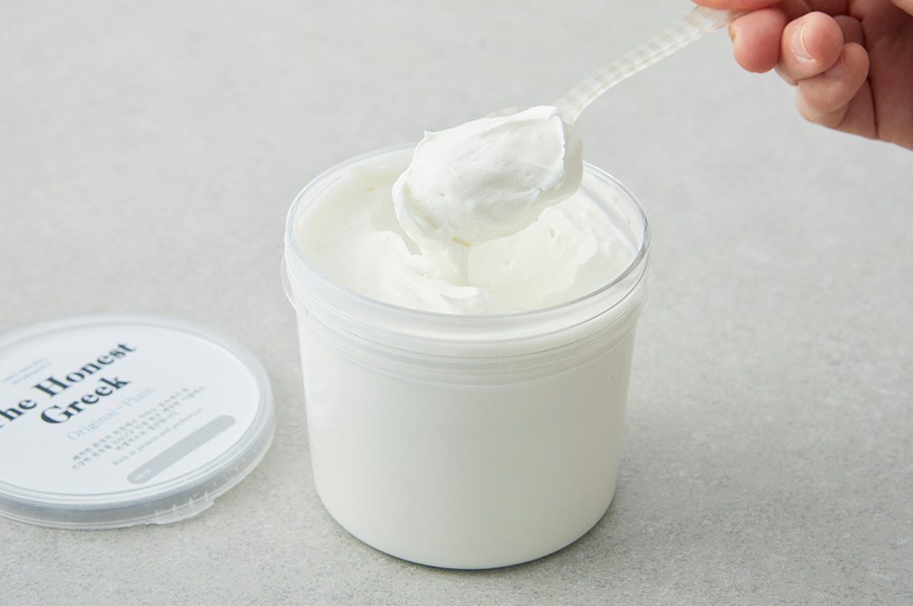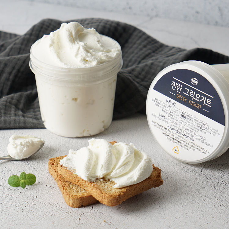 일반 요구르트는 원유를 살균한 후 유산균을 넣어 포근한 온도에서 발효시킨 것을 의미하는데, 이 요구르트의 유청을 사라지게해서 꾸덕하게 만든 것이 바로 그릭 요거트이예요.