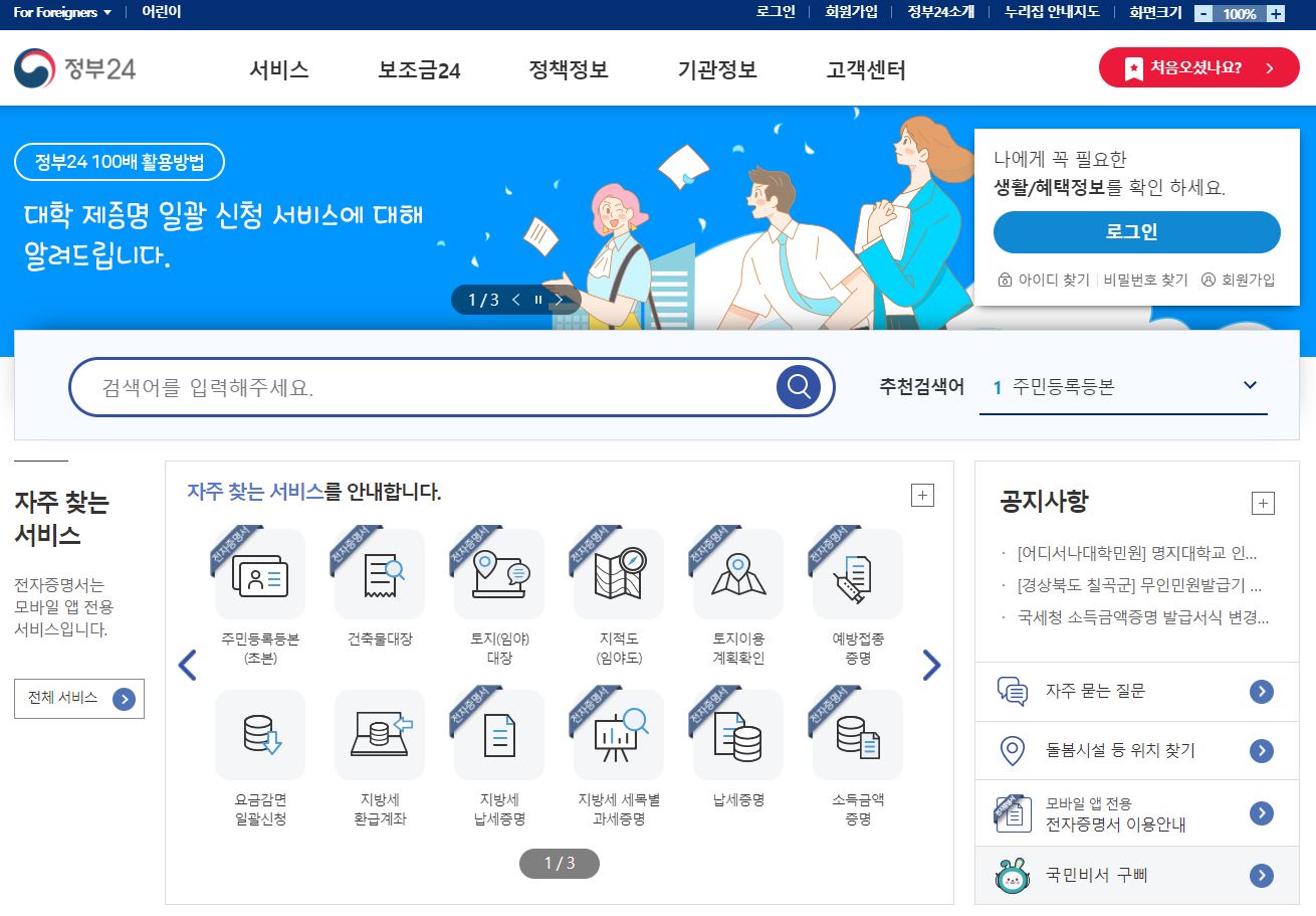지금은 인터넷이 되는 PC와 프린터만 있다면 무척 편하게 각양각색 서류를 신청하고 발행받을 수 있게끔 서비스를 공급시킨다고 하는 정부 사이트가 있습니다. 바로 정부24 홈페이지라고 하더라고요.
